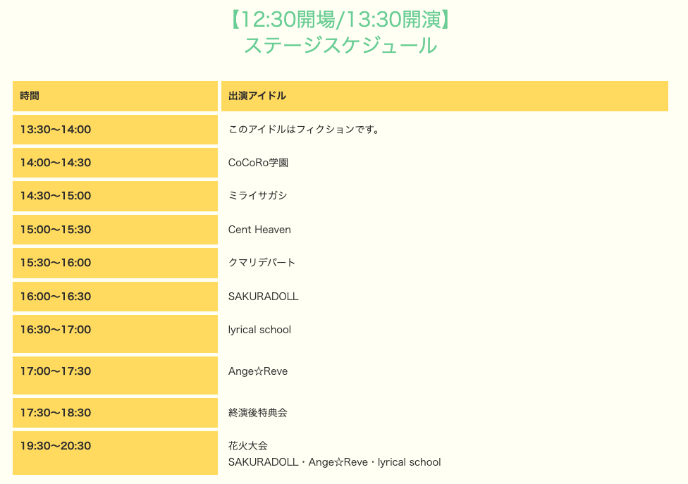 Ange☆Reve /クマリデパート / このアイドルはフィクションです。 / Cocoro学園 / SAKURADOLL / Cent Heaven / ミライサガシ / lyrical school