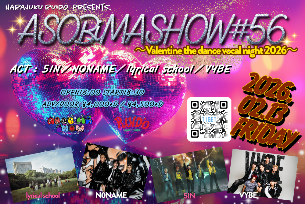 2/13(金)、「原宿RUIDO presents,ASOBiMASHOW #56~Valentine the dance vocal night 2026~」にlyrical schoolが出演します!