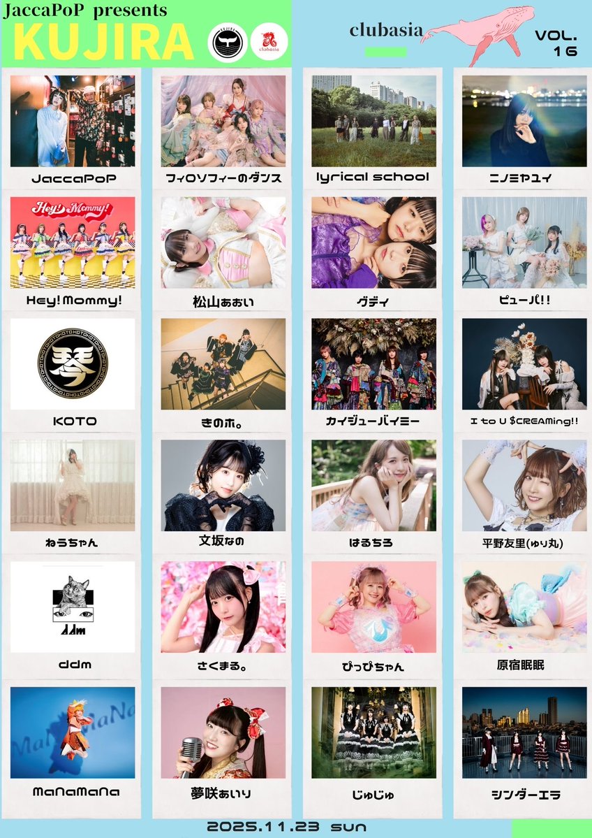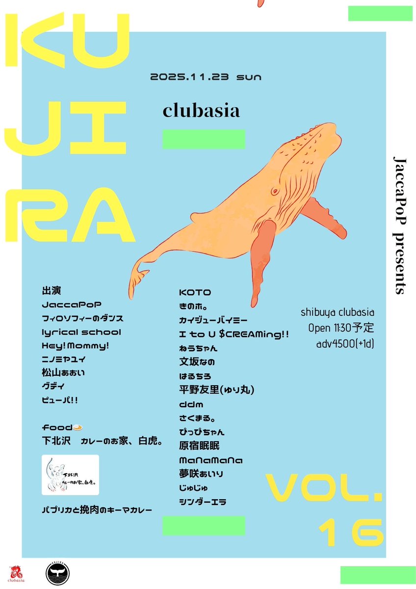 🐋本日20:00〜先着販売!🐋 / "JaccaPoP presents KUJIRA vol.16" #lyricalschool 出演!🐋 \ 🗓️11月23日(日) ⏰12:00-21:00予定 📍渋谷clubasia 🎫チケット先着販売!🎫 http://tiget.net/events/438264 ⏩1次販売10/24 20:00〜10/26 20:00 #くじら16