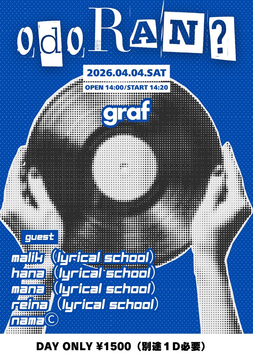 ⚠️時間が変更になりました⚠️ / 福岡 DJ event「ODORAN?」 malik,hana,mana,reina出演🎧🎶 \ 📅4/4(土) ⚠️14:00 OPEN / 14:20 START https://lyricalschool.com/14497/ 【出演者】 malik(lyrical school) hana(lyrical school) mana(lyrical school) reina(lyrical school) namaⒸ